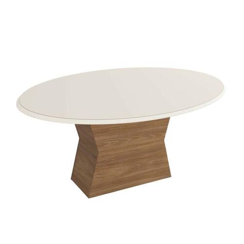 Tampo Mesa Sala de Jantar Madeirado c/Vidro TA61 Redondo 105X180cm Off White c/ Vidro Off White - Kappesberg