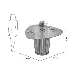 Mesa De Sala Jantar Tokyo C/ Tampo Madeirado C/ Vidro Orgânico 136x136cm Off White/dourado - Dj Móveis