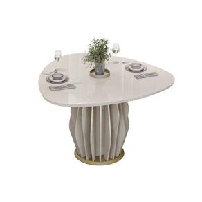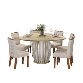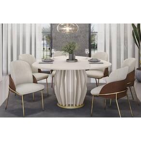 Mesa De Sala Jantar Tokyo C/ Tampo Madeirado C/ Vidro Orgânico 136x136cm Off White/off White - Dj Móveis