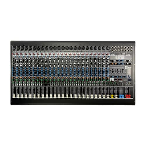 Modelo: MXT MX-24.4 Entradas: 24 canais com entradas XLR e Line balanceadas Equalização: Gráfico de 7 bandas Efeitos: Processador digital integrado Conectividade: Bluetooth, USB para gravação e reprodução Dimensões: 90x55x23 cm