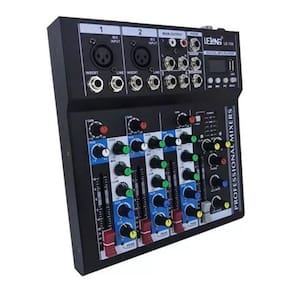 Mesa de som 4 canais com usb e bluetooth visor le-708 Mesa de som le-708 de última geração, que conta com reprodução de arquivos em mp3 via usb e conexão bluetooth. Este console lelong possui 4 canais; possui entrada usb para conexão de pendrives e função bluetooth além de 2 entradas para microfone. Principais características: - saída de áudio - saída de monitor headphone - canal esquerdo / direito da interface total de balanço de saída - saída de efeito - ajuste gian - controle distribuição - três segmentos do equalizador - controle de saída aux. - controle do volume do canal - controle do efeito de reverberação - de energia fantasma - nível indicador - feedback de efeito do ajuste de nível - tempo de atraso botão com ajuste - monitor de fones de ouvido para ajuste - ajuste do volume de saída auxiliar - ajuste do nível de reverberação - empurrador de controle de saída de sinal mestre - porta usb - reproduzir ou para o botão - botão de menu - função bluetooth Visor digital mp3 player - bluetooth - usb - canais de entrada 1 a 5 - entrada de mic eletronicamente - frequência: 10hz a 200khz - faixa de ganho: 14 db a 60 db - snr: 120 db e.I.N. - linha de entrada: balanceamento eletrônico - frequência: 10 hz a 130 khz - faixa de ganho: -6 db a 38 db - snr: 95 db e.I.N. Stereo channels: 220v, 50-60 hz, 7 channal 3.6kg - canais estereo - frequência: 10 hz a 70 khz - faixa de ganho: linha: -8 a 15 db / mic: 13 a .60 db - snr linha: 96db / mic: 104 db e.I.N. Baixo: 50hz, /- 15db - médio: 700 hz, /-15 db - alta: 10 khz, /-15 db Mistura principal - saídas principais: 28 dbu balanceado / 22 dbu desequilibrado - envio de aux: 22 dbu desequilibrado - envio de eff: 22 dbu desequilibrado - saída de tape: 22 dbu desequilibrado - saída de telefones: 15dbu/ 150 Saída de áudio - saída de monitor headphone - canal esquerdo / direito da interface total de balanço de saída - saída de efeito - ajuste gian - controle distribuição - três segmentos do equalizador - controle de saída auxiliar - controle do volume do canal - controle do efeito de reverberação - de energia fantasma - nível indicador - feedback de efeito do ajuste de nível - tempo de atraso botão com ajuste - monitor de fones de ouvido para ajuste - ajuste do volume de saída auxiliar - ajuste do nível de reverberação - empurrador de controle de saída de sinal mestre - porta usb - reproduzir ou para o botão - botão de menu Itens inclusos 1- mesa de som bluetooth usb le-708 1- fonte tomada de energia bivolt 1- manual do usuário português Homologação Anatel: 118782214976 Marca: Não Informado