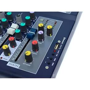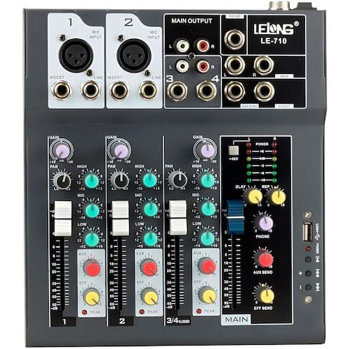Mesa de Som Digital USB 4 Canais Bluetooth MP3 Player Bivolt Mesa de Som Digital USB 4 Canais Bluetooth MP3 Player Bivolt LE-710 Potencialize o som das suas produções e apresentações com a Mesa de Som Digital LE-710. Desenvolvida para oferecer desempenho profissional, ela combina versatilidade, alta qualidade sonora e conectividade moderna, sendo ideal para DJs, músicos, produtores, podcasters e criadores de conteúdo que buscam confiabilidade e praticidade no dia a dia. Com conectividade Bluetooth, USB, RCA e entrada auxiliar, você pode reproduzir músicas diretamente de smartphones, tablets, computadores ou pendrives, além de utilizá-la como interface de áudio para gravações de alta qualidade no seu software preferido. Perfeita para home studios, transmissões , eventos, palestras e ensaios, entrega controle preciso e resposta sonora fiel, garantindo um resultado profissional em qualquer aplicação. A mesa conta com 4 canais independentes, incluindo entradas para microfone com configuração discreta e balanceada eletrônica, canais de linha balanceados e canais estéreo de alta performance. Sua equalização de 3 bandas graves, médios e agudos permite ajustar o som com precisão, enquanto o monitoramento em tempo real com controle de volume independente garante que você ouça exatamente o que está sendo transmitido ou gravado. Especificações Técnicas: - Modelo: LE-710 - Dimensões: 30,5 cm altura x 24 cm largura x 5 cm profundidade - Tipos de conectividade: RCA, Bluetooth, USB e Auxiliar - Alimentação: Bivolt - Cor: enviada aleatoriamente - Canais de entrada: - Microfone: frequência 10 Hz a 200 kHz, ganho +14 dB a +60 dB, SNR 120 dB E.I.N. - Linha: frequência 10 Hz a 130 kHz, ganho -6 dB a +38 dB, SNR 95 dB E.I.N. - Estéreo: frequência 10 Hz a 70 kHz, ganho linha -8 a +15 dB / mic +13 a +60 dB, SNR linha 96 dB / mic 104 dB E.I.N. - Equalização: - Baixo: 50 Hz 15 dB - Médio: 700 Hz 15 dB - Alto: 10 kHz 15 dB - Saídas principais: +28 dBu balanceado / +22 dBu desbalanceado - Envio AUX: +22 dBu desbalanceado - Envio EFF: +22 dBu desbalanceado - Saída tape: +22 dBu desbalanceado - Saída para fones: +15 dBu / 150 Itens inclusos: - 1 Mesa de Som LE-710 - 1 Fonte de Alimentação - 1 Manual do Usuário Construída com componentes de alta durabilidade e homologação de segurança, a LE-710 oferece confiabilidade em uso contínuo e excelente relação custo-benefício. Seu design compacto facilita o transporte e a instalação, sem abrir mão de recursos essenciais para quem busca qualidade e versatilidade em qualquer situação. : Este produto conta com de 3 meses contra defeitos de fabricação, assegurando que você tenha suporte e tranquilidade na sua compra. A Mesa de Som Digital USB 4 Canais Bluetooth MP3 Player Bivolt LE-710 é a escolha certa para quem deseja unir potência, qualidade sonora e recursos completos em um único equipamento. Homologação Anatel: 149822010251