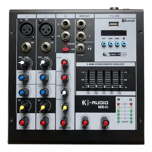 Mesa de som k-audio ms-40 4 canais A mesa de som analógica k audio ms 40, com seus 4 canais, é uma solução eficiente e compacta para a mixagem de áudio em diversos cenários, desde pequenos eventos até estúdios domésticos. Sua facilidade de uso e controles simples tornam-na uma escolha acessível e prática para músicos e técnicos iniciantes que buscam uma qualidade sonora satisfatória. Além disso, a presença do equalizador de 3 bandas high, mid, low e a capacidade de fornecer power para microfones condensadores de estúdio ampliam suas funcionalidades, oferecendo versatilidade na manipulação do som. Destacando-se pelas características que promovem a qualidade sonora, a ms 40 possui um equalizador gráfico estéreo de 5 bandas, permitindo uma correção precisa das frequências em monitores ou mixagens principais. A inclusão de um mp3 player embutido, compatível com formato multi-áudio e com bluetooth, adiciona uma camada adicional de conveniência, proporcionando opções flexíveis de reprodução. Com uma distorção abaixo de 0,0007% 20hz-20khz , esta mesa oferece um desempenho excepcionalmente limpo. Seu design compacto, com dimensões de 18.8x21x7 cm e peso de 1,1 kg, facilita o transporte e acomodação em diferentes ambientes, garantindo uma solução versátil para as necessidades de áudio. O tamanho da embalagem de 32x23.2x11.4 cm reforça a praticidade no armazenamento e transporte deste equipamento, tornando-o uma escolha ideal para quem busca eficiência e qualidade em um pacote acessível. Especificações tecnicas: - número de canais: 4 - equalizador: 3 bandas high, mid, low - power: sim, para microfones condensadores de estúdio - efeitos: 16 efeitos simples - equalizador gráfico estéreo: 5 bandas para correção precisa de frequências - mp3 player embutido: sim, compatível com formato multi-áudio, com display e bluetooth - distorção: abaixo de 0,0007% 20hz-20khz Dimensões: - altura: 7 cm - largura: 18,8 cm - profundidade: 21 cm - peso: 6,5 kg Itens inclusos: - mesa de som k audio ms 40 4 canais - cabo de alimentação - manual do usuário : - 12 meses de pelo fabricante Origem: china Fotos meramente ilustrativas. Homologação Anatel: 007892012769