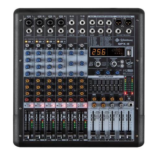 Mesa De Som Com 8 Canais 3 Aux Waldman Quadraphonyx Qpx-08 Principais Recursos Técnicos: - Console de mixagem: Analógico - Pode ser conectado por Bluetooth - Tipo do alimentação: corrente elétrica - Entradas combo XLR/P10 balanceadas nos canais mono com power individual +48V - Entradas estéreo com conectores duplos P10 - Insert para uso de processadores externos nos canais mono - Reprodução e gravação via USB com suporte MP3 - Interface para pendrive e controle completo por encoder - Bluetooth e gravação direta em pendrive modo REC - Saídas balanceadas principais XLR e P10 - Saídas AUX, SUBGRUPO e PHONES - 3 Auxiliares 2 AUX + 1 FX AUX - 2 Subgrupos - Entradas RETURN e saídas SEND para efeitos externos Dsp Integrado e Efeitos: - Processamento com conversor 32-bits - Taxa de amostragem de 48 kHz - Controle FX por canal e fader FX dedicado - Recurso FX To AUX para envio de efeitos a monitores - Equalizador 3 bandas dedicado para MP3 Aplicações: - Bandas e Músicos solo - Estúdios de podcast e transmissão - Igrejas e Templos - Corporativo: Palestras, Workshops, Eventos híbridos, salas de aula e auditórios - DJs e sonorização de eventos - Produções com gravação via USB Especificações Técnicas Relevantes: - Entradas Mic XLR : ganho de +10 a +60 dB resposta de 10Hz a 200kHz - Entradas de Linha TRS : ganho de -10 a +40 dB impedância 20kohm - Entradas Estéreo TRS : ganho até +22 dBu impedância 20kohm - Auxiliares: saída +22 dBu impedância 120ohm - Saídas principais XLR/TRS : +28 dBu balanceadas - Saída Phones: +19 dBu - Voltagem universal: 100/240V com chave automática - Ruído Residual: até -101 dB Main Mix - - Dimensões: Altura de 16,56 cm x Largura de 45,5 cm x Profundidade de 65,5 cm - Peso: 4,10 Kg - : 12 meses - Prazo de validade: Indetertminado Homologação Anatel: 149822010251 Marca: Não Informado Ean: 7898467727935