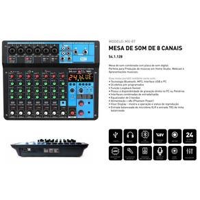 MESA DE SOM MIXER 8 CANAIS COM PHANTOM POWER