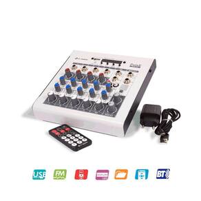 Especificações Técnicas: - Ajuste de Ganho por canal - Media Player com Gravação direta via USB - Bluetooth, PC Direct - Volume independente das saídas L e R - Equalizador de 02 vias: Graves e Agudos - Canal Estéreo com conectores P10 e RCA - Acompanha Fonte Externa com cabo USB - Entrada: 100V-240V - 50/60HZ 0,35A - Compatível com fonte de celulares acima de 10W Permite alimentação por porta USB acima de 2A - Quantidade de canais: 6 Canais P10 - 4 canal mono, 1 estéreo - Alimentação: 90V a 240V - Consumo: 430 mA - Dimensões: Altura de 6,5 cm x Largura de 25,4 cm x Profundidade 15 cm, embalado - Peso: 0,95 Kg - Garantia: 12 meses - Prazo de validade do mixer: Indeterminado Homologação Anatel: 060792000160 Ean: 7898623886285
