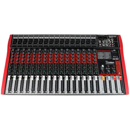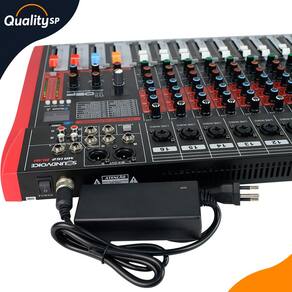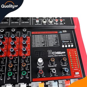 Especificações Técnicas: • Marca: SOUNDVOICE • Modelo: MR-162 RUBI • 16 canais combo com entradas XLR e P-10. • Equalização de 3 vias por canal: grave, médio, agudo. • 16 efeitos com processador e display LCD. • Entrada USB com gravação e reprodução. • Possui efeitos de 24 bits • Interface de áudio e função Bluetooth integrada. • Leds indicadores de pico para melhor controle do som. • Funcionalidade bivolt para maior comodidade.