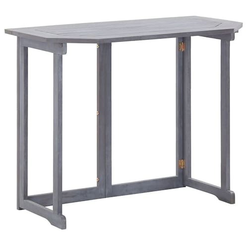 Esta mesa de varanda dobrável é impressionante, mas prática para uso externo. É feito de madeira maciça de acácia com acabamento cinza envelhecido, conferindo-lhe charme rústico e pode ser utilizado para pequenas reuniões ou simplesmente relaxar ao ar