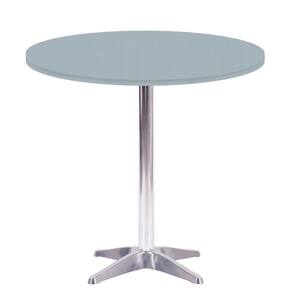 Mesa Delta em Alumínio 75 cm (Alt) Base em X Tampo MDP Redondo 70 cm (Larg) x 2,50 cm (Alt) Cinza