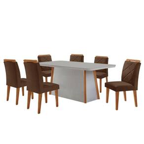 Mesa Diane 180cm Mdf Vidro E 6 Cadeiras Melissa Veludo Marrom/off/nat/serig Off Com Vidro