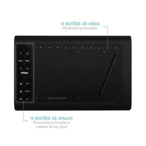 Descrição: Explore sua criatividade em uma nova dimensão! Crie, desenhe e edite com total liberdade e riqueza de detalhes, efeitos e cores com a Mesa Digitalizadora Criativa Plus 10? MX002. Perfeita para desenhos digitais, pinturas, ilustrações, edição de imagem ou de vídeo, sketching e tantas outras funções. Expresse suas ideias com movimentos naturais e total fluidez em sua ampla área de trabalho de 10?. Sinta a experiência de desenhar na superfície desenvolvida com tecnologia que simula a sensação de escrever no papel. Com tela de textura suave em estiloso design, é tão atraente quanto o seu alto desempenho. Para máxima eficiência e praticidade, possui 12 botões de atalho e 10 teclas multimídia com funções de uso frequente. Os parâmetros desenvolvidos no mais alto nível permitem que você desenhe com fluidez e máxima performance. São 8192 níveis de sensibilidade à pressão da caneta, taxa de velocidade de leitura de 233 pps e resolução de 5080 lpi. Caneta digital inteligente, não querer pilhas ou cargas. Leve e ergonômica, se adapta à sua mão com naturalidade e possui dois botões para funções rápidas, além de vir com 8 pontas extras. Cada linha traçada é refletida na sua tela de forma natural e precisa. Já vem com tudo que você precisa para começar a usar. Basta plugar o cabo USB ao seu computador, instalar o driver e pronto. Crie à vontade! Características: Tamanho área ativa: 255x155mm; Base antiderrapante; Permite uso ambidestro; ExpressKeys: 10 teclas de pressão + 12 funções touch multimídia; Caneta inteligente passiva -não requer pilhas ou baterias-; Dois botões de atalho na caneta; Níveis de sensibilidade: 8192 níveis; Taxa/ velocidade de leitura da caneta: 233 pps; Resolução: 5080 lpi; Reconhecimento de inclinação; Cabo USB revestido de alta durabilidade; Interface USB 2.0; Tensão de alimentação: DC 5V; Peso: 687g; Dimensões da mesa: 360x240x11,5mm; Cor: Preto. Requisitos: Adaptavel com Windows 7 ou superior, macOS 10.12 ou superior. Porta padrão USB, a