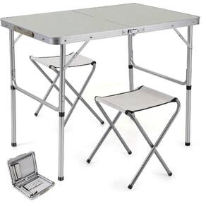 Conjunto de Mesa e Bancos Dobráveis Multifuncionais - Alumínio PremiumLeve praticidade e estilo para seus momentos ao ar livre com o Conjunto de Mesa e Bancos Multifuncionais, ideal para piqueniques, camping, jogos ou refeições ao ar livre. Compacto, leve e fácil de transportar, este conjunto é perfeito para quem busca funcionalidade e conforto em qualquer situação.Características do Produto:Conjunto Completo: Inclui uma mesa dobrável de 90 x 60 cm e dois bancos resistentes para até 2 pessoas.Material de Alta Qualidade: Fabricado em liga de alumínio e fibra de alta densidade, garantindo leveza, durabilidade e resistência ao uso contínuo.Estabilidade Aprimorada: Construção com pés quadrados proporciona maior estabilidade em terrenos variados.Altura Ajustável: Possui duas opções de altura (45 cm e 70 cm), adaptando-se a diferentes necessidades e ocasiões.Design Portátil: Conjunto dobrável com dimensões compactas (45 x 60 x 7 cm quando fechado) e peso total de apenas 8 kg, facilitando o transporte e o armazenamento.Vantagens e Benefícios:Versatilidade: Ideal para piqueniques, acampamentos, festas, mesas de jogos ou jantares ao ar livre.Durabilidade: Materiais resistentes que garantem uso prolongado e alta performance.Praticidade: Montagem rápida e fácil, permitindo mais tempo para aproveitar seu momento de lazer.Leve e Compacto: Conveniente para carregar e guardar, sem ocupar muito espaço.Especificações Técnicas:Mesa: 90 x 60 cm.Bancos: 29 x 32 x 35 cm.Alturas Ajustáveis da Mesa: 45 cm ou 70 cm.Peso Total: 8 kg.Material: Liga de alumínio e fibra de alta densidade.Transforme qualquer lugar em um espaço de convivência confortável e organizado com o Conjunto de Mesa e Bancos Dobráveis Multifuncionais. A solução perfeita para suas aventuras ao ar livre ou momentos especiais com a família. Adquira já o seu! OBS: Video meramente ilustrativo