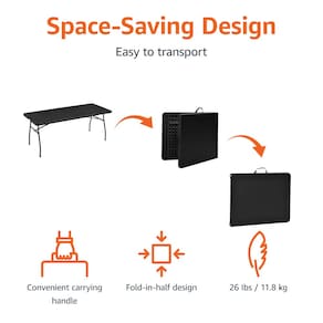 Amazon Basics Mesa dobrável de 1,8 m com alça de transporte, interna e externa, preta