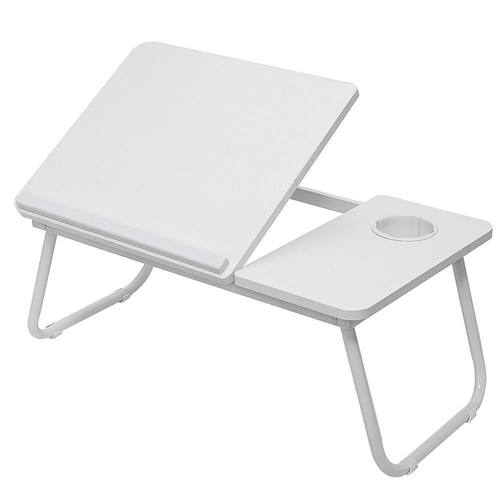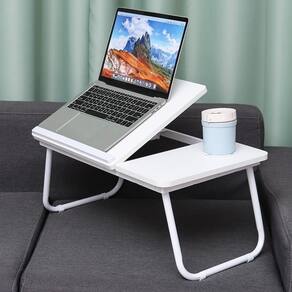 Mesa Dobrável para Notebook em Madeira Branca Portátil, Ajustável e Multifuncional