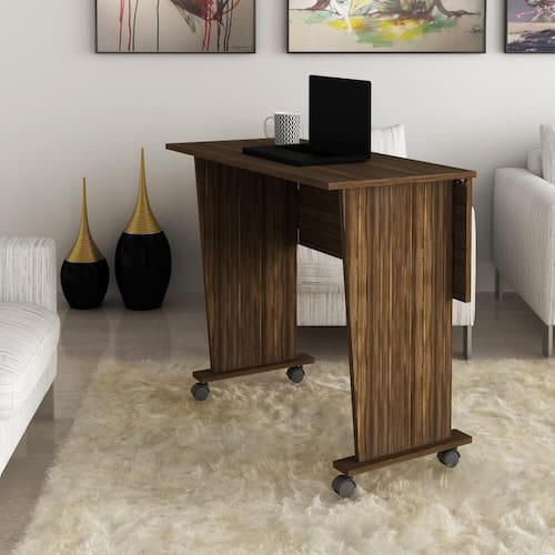 A Mesa dobrável da Tecno Mobili é ideal para ambientes pequenos que necessita muita praticidade, pois cabe em lugares estreitos, oferece uma ótima mesa para notebook, estudos ou até mesmo refeições. Os rodízios possibilitam deslize fácil e macio da peça, além de muita praticidade. Tem estrutura 100% MDP de 15 mm, o que confere a boa resistência e durabilidade.