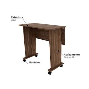 Características - Nogal. - Estrutura: MDP. - Acabamento em BP. - Tampo dobrável. - 4 Rodízios em PVC. - Suporta: Até 10 Kg. - Móvel entregue desmontado. - Marca: Tecno Mobili