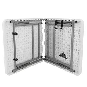 Características Técnicas: Tampo em polietileno de alta densidade (HDPE) e base em aço carbono com pintura a pó. Suporta até 150kg Altura intermediária: 61cm Altura baixa: 48cm Dobrável