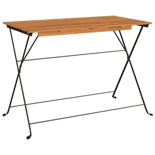 Esta mesa de bistrô dobrável inteligente combina praticidade com boa aparência, tornando-a um ótimo complemento para qualquer área externa ou espaço interno aconchegante. Com um tampo robusto de madeira maciça de acácia e uma estrutura de aço elegante, esta peça contemporânea ilumina seu jardim, varanda ou pátio, ao mesmo tempo que oferece um excelente local para jantar e relaxar, esteja você tomando um brunch ensolarado ou uma