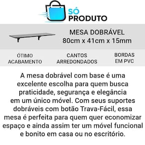 Em resumo, a mesa dobrável com base é uma excelente escolha para quem busca praticidade, segurança e elegância em um único móvel. Com seus suportes dobráveis com botão Trava-Fácil, cantos arredondados e design moderno, essa mesa é perfeita para quem quer economizar espaço e ainda assim ter um móvel funcional e bonito em casa ou no escritório.
