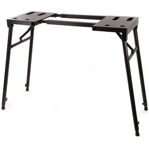 Mesa Dobrável Para Teclado -excelente estabilidade e capacidade de carga. -O design aberto na parte inferior do suporte oferece muito espaço para pedais de efeito e cabeamento. -A construção em aço garante grande estabilidade para equipamentos pesados.Barras de apoio e dobradiças adicionam capacidade extra e permitem que as pernas se dobrem Facilitando o transporte ou armazenagem. -alta qualidade. -dimensões: Altura:65-110 cm Largura:73-130 cm Comprimento:24 cm -material:aço -peso:7,5 kg -cor:preto -origem: -ideal para piano,teclado de 61 teclas/76 teclas/88 teclas,case de CDJ,entre outros. Marca: Não Informado