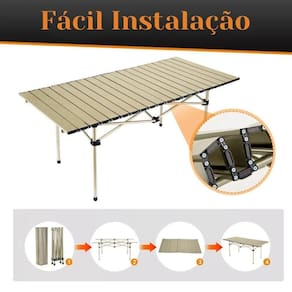 Esta mesa é adequada para uso externo?Sim, é ideal para acampamentos, piqueniques, churrascos e outras atividades ao ar livre.Qual é o material da mesa?A mesa é feita de plástico resistente e metal, garantindo durabilidade e estabilidade.A altura da mesa é ajustável?Alguns modelos possuem altura ajustável, adaptando-se às suas necessidades.Qual é o peso suportado pela mesa?A mesa suporta até 30 kg, proporcionando uma superfície estável para diversos itens.A mesa é fácil de transportar?Sim, a mesa é totalmente dobrável, facilitando o transporte e o armazenamento.Qual é o tamanho da mesa quando aberta?A mesa mede 49 cm de altura, 55 cm de largura e 53 cm de comprimento quando aberta.