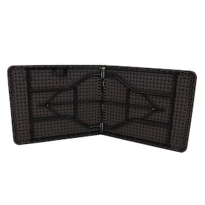 Mesa Dobrável Portátil 180x74cm Que Vira Maleta Para Camping Praia Leve Plástico com Textura de Madeira Marrom