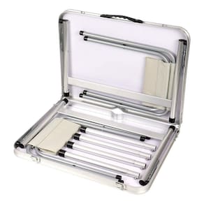 Características: - Fácil de montar e desmontar; - Torna-se uma prática maleta para transporte; - Estrutura de alumínio, tampo de MDF aluminizado e tecido oxford nas banquetas.