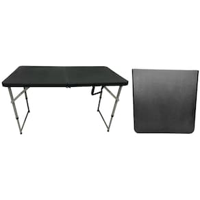 Mesa Dobrável Vira Maleta Com 3 Regulagens De Altura PretaComprimento 1,22mAlturas reguláveis: 56cm / 74cm / 91cmLargura 61cmPeso Bruto 9,5kgPeso Liq 8,5kgEmbalagem fechada 61,5x8,5x62cmCom trava nos pésMontagem simples, basta abrir o tampo e abrir os pésCor do tampo PretaCor da ferragem CinzaTampo de Polipropileno de alta densidadePés e Suportes internos em ferro com pintura especial Marca: Vghome