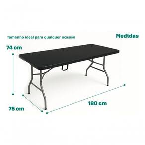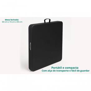 Solução prática, resistente e versátil para uso em ambientes externos e internos. Ideal para acampamentos, churrascos, eventos, feiras ou até mesmo como mesa auxiliar em casa, ela oferece uma estrutura robusta e grande área de apoio, sem abrir mão da facilidade de transporte e armazenamento. Produzida com tampo em polietileno de alta densidade, a mesa é durável, fácil de limpar e resistente a impactos. Sua estrutura metálica reforçada com pés antiderrapantes garante firmeza em diferentes tipos de terreno. O design dobrável permite que seja facilmente fechada e armazenada, ocupando pouco espaço e facilitando o transporte para qualquer lugar.