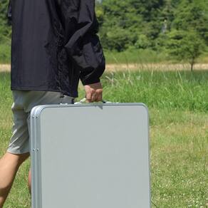 Leve praticidade e conforto para qualquer lugar com a Mesa Dobrável em Alumínio com Tampo em MDF.