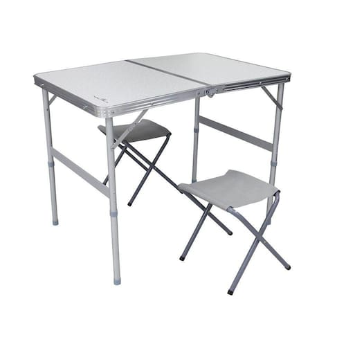 Esta mesa é um modelo leve e prática para seu camping. A Mesa Domo da Nautika vem em formato de uma prática maleta que, ao abrir, se transforma numa mesa dobrável pronta para ser usada.Sua estrutura é feita de alumínio, que garante a leveza do produto, e o tampo em MDF aluminizado. Já os bancos, sãatilde,o revestidos com tecido oxford. Fácil de instalar e montar, a Mesa Domo é prática desde seu transporte até o uso e desmontagem.Cores: ÚNICADimensões (cm): 63cm (C) x 7,5cm (L) x 47cm (A) (fechada) - 90cm (C) x 60cm (L) x 70cm (A) (aberta) - 28,5cm x 26cm x 39cm (bancos) Material: Estrutura de alumínio, tampa de MDF aluminizado e tecido oxford nos bancosPeso: 5,1 kgPeso Máximo Suportado (kg): Mesa 30kg (distribuído por igual) / Banco 85kg (cada)