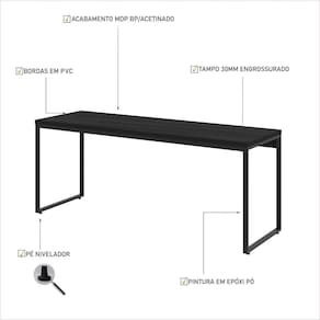 Mesa Dynamica Diretor 180x60x75cm Preto ônix / Preto ônix / Sobre o ProdutoMesa Dynamica Diretor 180X60X75cm Branco Chess / Est.PretaDescrição do Produto:A Mesa Diretor DYME6180 é um produto prático e versátil, que pode ser utilizado em diversos ambientes, como quarto e escritório, na sala, cozinha ou seu depó Linha Dynamica reúne design minimalista e praticidade, traços retos e móveis versáteis são as características dessa coleção. As estruturas metálicas possuem pintura Epóxi e sapatas niveladoras e, nos tampos, MDP BP Acetinado com fitas de borda em PVC. Itens Inclusos:1 MesaDimensões dos Produtos:Mesa Dynamica Diretor 180X60X75cm Branco Chess / 180 x 60 x 75 cmInformações Logísticas (Comp. X Prof. X Alt.) 183 x 63 x 9 cm - Peso: 20,1 KgPeso Total: 20,1 KgObservações:Não acompanha acessórios decorativos. Imagens meramente ilustrativas.Informações Técnicas / Características:- Cor do Produto: Branco Chess / - Marca: Compace- Modelo: DYME6180- Linha: Dynamica- Material: Mdp- Material da Estrutura / Pés: Aço- Acabamento: Perffect Acetinado- Escala de Brilho: Fosco- Fita de Borda: Pvc - Possui Gavetas: Não - Possui Pés: 2- Pés Niveladores: Sim - Acabamento Estrutura: Epóxi-Pó Texturizado- Formato: Retangular - Suporta Até (kg): 40 kg- Comprimento: 180cm- Profundidade: 60cm- Altura: 75cm - Peso Lí.: 19Kg- Recomendações de Uso, Manutenção e Limpeza: Para a limpeza, utilize flanela seca ou pano macio levemente umedecido em água. Utilize um pano seco em seguida. Evite com produtos químicos (solventes, thinner, acetona, etc) e não utilize nenhum tipo de esponja de aço.- Necessita de Montagem: Sim / Acompanha Manual de Montagem- Complexidade da Montagem: Média: pode ser montado por mais de uma pessoa e/ou necessite de maior conhecimento para montagem.- Garantia: 6 meses Material: Mdp | Acabamento: Perffect Acetinado | Escala de Brilho: Fosco | Fita de Borda: Pvc | Material da Estrutura: Aço | Acabamento da Estrutura: Epóxi-Pó Texturizado | Profundidade: 60 cm | Altura: 75 cm | Comprimento: 180 cm | Quantidade de caixas de embalagem: 1 | Produto: Mesa | Cômodo indicado: Escritórios | Cor: Multicolorido | Tonalidade: Multicolorido | Coleção: Industrial | Requer Baterias: Não | Certificação Externa: Não aplicável | Componentes inclusos: | É frágil: Sim | Preço de tabela: | Fabricante: Compace | do Modelo: DYME6180 | de Caixas: 1 | de Itens: 1 | da Peça: DYME6180 | Baterias são necessárias?: false | Palavras-chave de Pesquisa: Não Aplicável | Quantidade de itens: 1 | Principais Características do Produto 0: Escritório | Principais Características do Produto 2: Estrutura de aço | Exige montagem: true | Acabamento do móvel: BP Acetinado | Peso do item: value=19;unit=kilograms | Dimensões do item P x L x A: width#value=180;depth#unit=centimeters;height#value=75;height#unit=centimeters;depth#value=60;width#unit=centimeters | Produto personalizado: | Base da Mesa: | Duração da Garantia: | Dimensões do Produto (A x L x C), sem a caixa de embalagem: | Desing da Escrivaninha: | Recursos da Escrivaninha: | Montagem: | Marca: | Móvel Dobrável: | País de Origem: | Coleção de Antiguidade: | Tipo de Mesa: | Recursos da Mesa: | Tipo de Garantia: | Código Anvisa do Produto: | Motivo de Isenção Anvisa: | Data de validade Anvisa: | Formato da Escrivaninha: | Shape: | Tamanho Do Pacote: | de Assentos: | Temas de Estampas: | Formato do Espelho: | Nr. do Lote do Produto: | Altura da Mesa: | Funcionalidades: | Estilo: | Qtd. de Produto no Lote: | Quantidade: Cor: Preto Ônix /