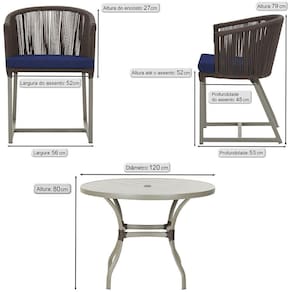 Fotos meramente ilustrativas. Tonalidades podem variar dependendo do monitor. Os objetos que ambientam as Fotos nao acompanham o produto. Antes de comprar o seu produto verifique as medidas, o onde pretende instalar e se necessario contratar o servico de um qualificado. Produto conhecido como: mesa e cadeiras, Jogo de jantar, Estofado impermeavel, Moveis de exterior, Cadeira resistente a agua, Cadeira estofada, Cadeira para area externa, Cadeira de jardim, Moveis para varanda, Cadeira duravel, Cadeira de alta qualidade, Conforto em Cadeira, Cadeira elegante.