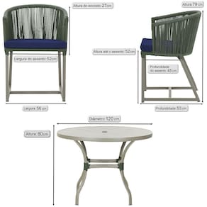 Fotos meramente ilustrativas. Tonalidades podem variar dependendo do monitor. Os objetos que ambientam as Fotos nao acompanham o produto. Antes de comprar o seu produto verifique as medidas, o onde pretende instalar e se necessario contratar o servico de um qualificado. Produto conhecido como: mesa e cadeiras, Jogo de jantar, Estofado impermeavel, Moveis de exterior, Cadeira resistente a agua, Cadeira estofada, Cadeira para area externa, Cadeira de jardim, Moveis para varanda, Cadeira duravel, Cadeira de alta qualidade, Conforto em Cadeira, Cadeira elegante.