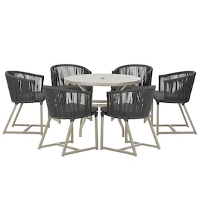 Combinando estilo e resistencia, esta Mesa e cadeiras traz o melhor do design contemporaneo em aluminio com micro pintura e acabamento em corda nautica. O Estofado impermeavel completa o conforto e a funcionalidade, tornando-a ideal para ambientes externos e internos.