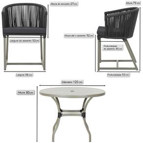 Fotos meramente ilustrativas. Tonalidades podem variar dependendo do monitor. Os objetos que ambientam as Fotos nao acompanham o produto. Antes de comprar o seu produto verifique as medidas, o onde pretende instalar e se necessario contratar o servico de um qualificado. Produto conhecido como: mesa e cadeiras, Jogo de jantar, Estofado impermeavel, Moveis de exterior, Cadeira resistente a agua, Cadeira estofada, Cadeira para area externa, Cadeira de jardim, Moveis para varanda, Cadeira duravel, Cadeira de alta qualidade, Conforto em Cadeira, Cadeira elegante.