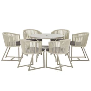 Mesa e 6 Cadeiras De Jantar Noronha Fendi e11 Trama autêntico Rami - Blush