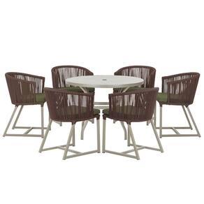 Mesa E 6 Cadeiras De Jantar Noronha Fendi E13 Trama Marrom