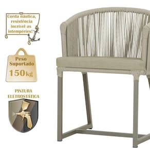 Combinando estilo e resistencia, esta Mesa e cadeiras traz o melhor do design contemporaneo em aluminio com micro pintura e acabamento em corda nautica. O Estofado impermeavel completa o conforto e a funcionalidade, tornando-a ideal para ambientes externos e internos.