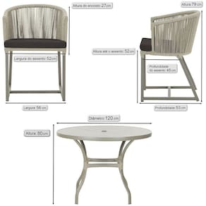 Fotos meramente ilustrativas. Tonalidades podem variar dependendo do monitor. Os objetos que ambientam as Fotos nao acompanham o produto. Antes de comprar o seu produto verifique as medidas, o onde pretende instalar e se necessario contratar o servico de um qualificado. Produto conhecido como: mesa e cadeiras, Jogo de jantar, Estofado impermeavel, Moveis de exterior, Cadeira resistente a agua, Cadeira estofada, Cadeira para area externa, Cadeira de jardim, Moveis para varanda, Cadeira duravel, Cadeira de alta qualidade, Conforto em Cadeira, Cadeira elegante.