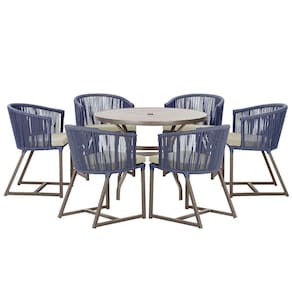 Mesa E 6 Cadeiras E Noronha Marrom E7 Trama Azul