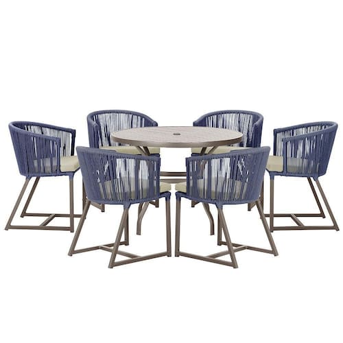 Produto conhecido como: mesa e cadeiras, Jogo de jantar, Estofado impermeavel, Moveis de exterior, Cadeira resistente a agua, Cadeira estofada, Cadeira para
