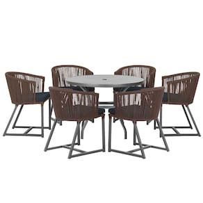 Mesa E 6 Cadeiras E Noronha Preto E12 Trama Marrom