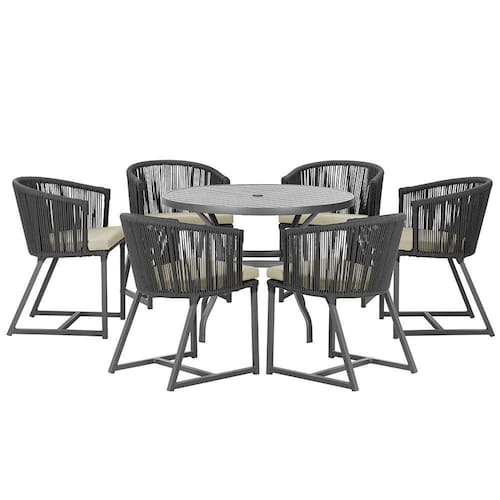 Produto conhecido como: mesa e cadeiras, Jogo de jantar, Estofado impermeavel, Moveis de exterior, Cadeira resistente a agua, Cadeira estofada, Cadeira para