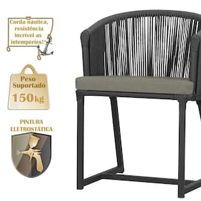 design contemporaneo em aluminio com micro pintura e acabamento em corda nautica. O Estofado impermeavel completa o conforto e a funcionalidade, t