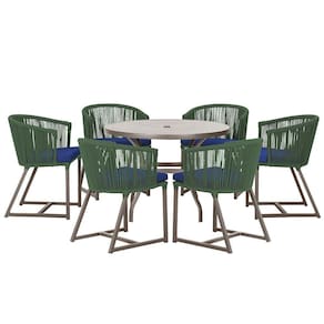 Mesa E 6 Cadeiras Jantar Noronha Marrom E10 Trama Verde