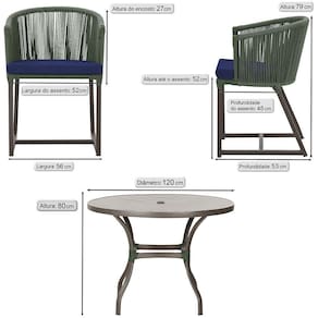 Fotos meramente ilustrativas. Tonalidades podem variar dependendo do monitor. Os objetos que ambientam as Fotos nao acompanham o produto. Antes de comprar o seu produto verifique as medidas, o onde pretende instalar e se necessario contratar o servico de um qualificado. Produto conhecido como: mesa e cadeiras, Jogo de jantar, Estofado impermeavel, Moveis de exterior, Cadeira resistente a agua, Cadeira estofada, Cadeira para area externa, Cadeira de jardim, Moveis para varanda, Cadeira duravel, Cadeira de alta qualidade, Conforto em Cadeira, Cadeira elegante.