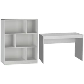 Produto: 01 Mesa 01 Estante | Cor: Colorido | Tonalidade: Multicolorido | Cômodo Indicado: Escritórios Cor: Branco