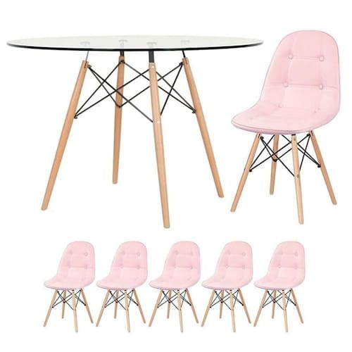 Fabricante: Mobili | RBN: 17100657011 | Altura: 75 cm | Cor: Multicolorido | Garantia do fabricante: 3 meses | Largura: 120 cm | Peso do produto: 20 kg | Produto: Conjunto de Mesa e Cadeiras | Quantidade de lugares: 5 | Material do tampo (mesa): Vidro incolor temperado 8 mm | Material da base (mesa): Madeira e aço | Altura (mesa): 75 cm | Diâmetro (mesa): 120 cm | Material do assento (cadeiras): Coro PU | Material da base (cadeiras): Madeira e aço | Altura do assento (cadeiras): 45 cm | Largura do assento (cadeiras): 44 cm | Profundidade do assento (cadeiras): 38 cm | Peso suportado (cadeiras): 130 kg | Estado de origem: SC | Comprimento: 120 cm | Material para filtro: Vidro | Tonalidade: Multicolorido Cor: Rosa