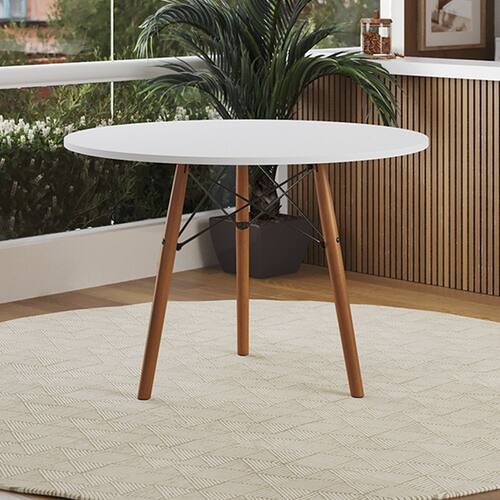Mesa Eames Eiffel Tampo Redondo Isabella 80cm Mdf 3 Pés em Madeira Branco - Casa Prime